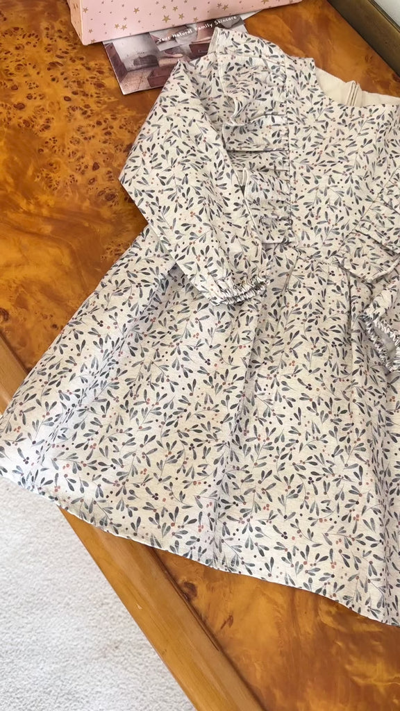 Abito in cotone organico con fiocchi e ruches – Stampa esclusiva ciliegie