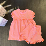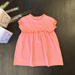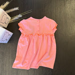 Abito corto in cotone quadretto rosa fluo