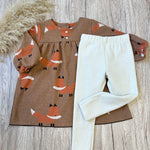 Le volpine disegnano un motivo delicato e giocoso, rendendo questo abito speciale e facile da abbinare a leggings o accessori per un look sempre curato.
