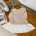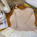 petit indi - Abito in caldo cotone mille righe rosa polvere e latte - maxi colletto