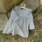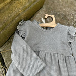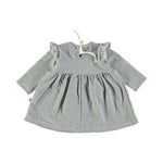Abito in caldo cotone con delicata fantasia a righe, arricchito da raffinati ruches sulle spalline. Un capo che unisce comfort e un tocco distintivo, ideale per un look sofisticato e accogliente.