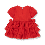 Abito in tulle rosso brillante con sottoveste in cotone organico