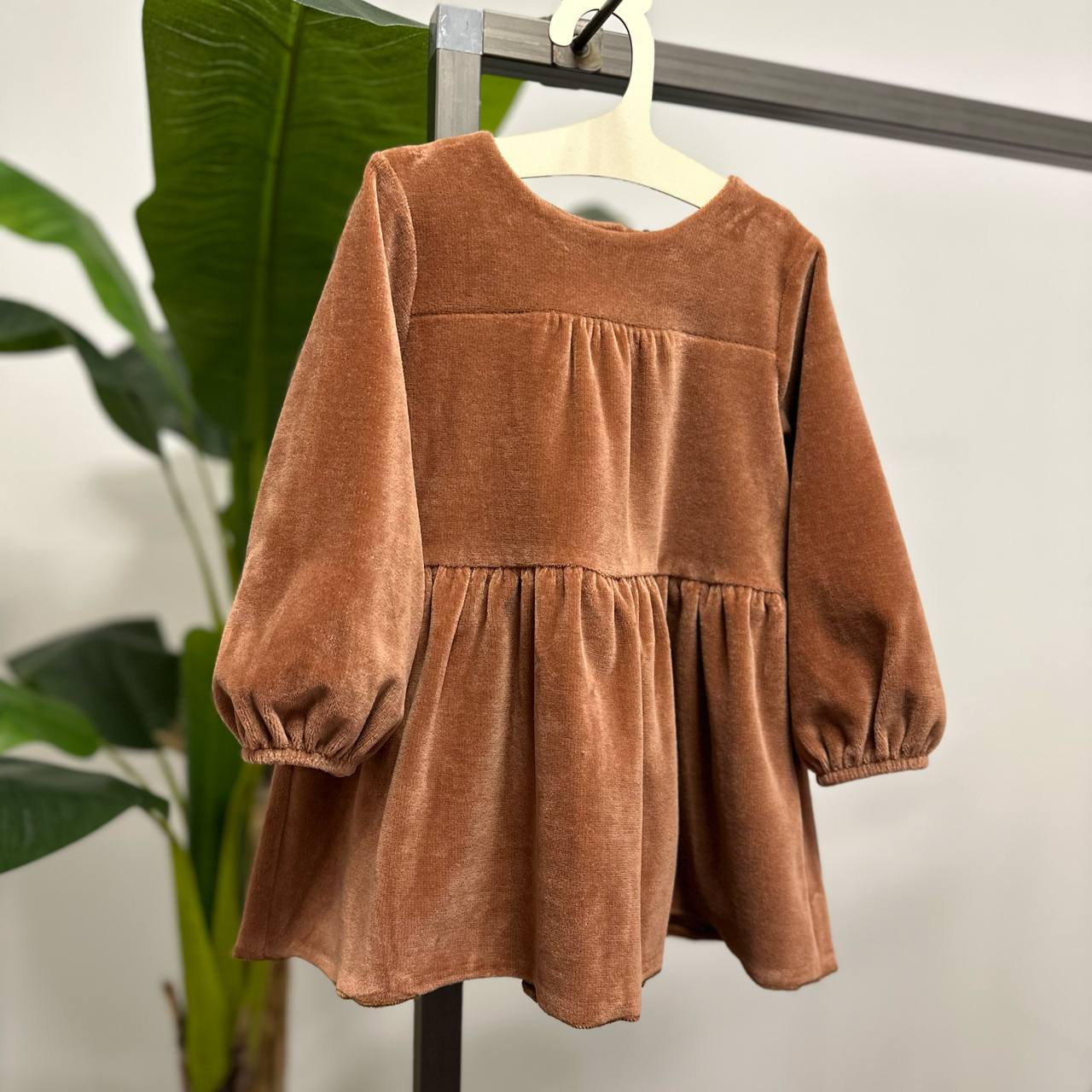 Abito in velluto color petra, un capo elegante e raffinato, perfetto per le occasioni speciali. Realizzato in morbido velluto, offre un comfort eccezionale e una vestibilità impeccabile. Il design classico, con dettagli curati, rende questo abito ideale per feste, eventi e cerimonie. Facile da abbinare con accessori, è un must-have nel guardaroba delle bambine che desiderano sentirsi speciali e alla moda. Un abito che unisce stile e praticità, per ogni piccolo momento da celebrare.