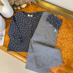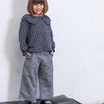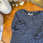 petit indi - Blusa in mussola di cotone antracite - maxi colletto e foglioline latte