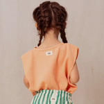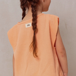 La blusa Roman è realizzata in morbida mussola di cotone biologico a effetto stropicciato, perfetta per donare leggerezza e naturalezza a ogni look. Senza maniche e con abbottonatura frontale, unisce comfort e stile essenziale.