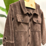Camicia-giacca in velluto color talpa, un capo versatile e di tendenza. Realizzata in morbido velluto, è perfetta per essere indossata come giacca leggera o come camicia per un look sofisticato. Il design elegante e i dettagli curati la rendono ideale per ogni occasione, dalle uscite casual alle occasioni speciali. Facile da abbinare con jeans o gonne, questa camicia-giacca è un must-have nel guardaroba dei bambini che amano uno stile unico e alla moda.