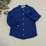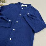 Stile raffinato e comfort assoluto si incontrano in questa camicia alla coreana in mussola di cotone. Morbida, leggera e traspirante, è perfetta per ogni occasione, dalle uscite quotidiane agli eventi speciali. Il Patriot Blue, intenso e versatile, la rende un capo senza tempo, facile da abbinare.