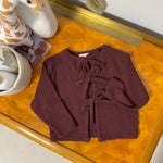 Cardigan in caldo cotone borgogna con fiocchi frontali