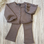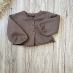 Cardigan in felpa di cotone mocha mousse - ruches sul retro
