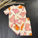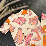 completo basic in cotone con stampa esclusiva con gattini rosa