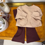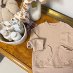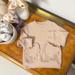 fiorile - Maglia in caldo cotone pink nude con tasche frontali a cuore