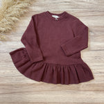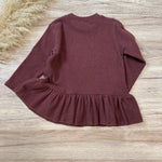Maglia in caldo cotone dal colore borgogna, con linea svasata che dona movimento e leggerezza.