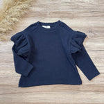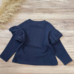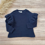 Maglia in caldo cotone blu notte con spalla scesa e volant