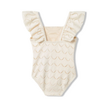 Il costume intero perfetto per le giornate al mare o in piscina. Realizzato in tessuto elasticizzato di alta qualità, è pensato per offrire libertà di movimento e massimo comfort. Le delicate ruches in macramè aggiungono un tocco romantico e ricercato, trasformando un capo funzionale in un piccolo gioiello di stile.