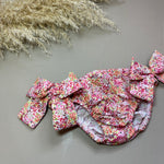Costumino in cotone leggero con fantasia Liberty, realizzato artigianalmente in Italia. La stampa floreale, un micro fiorellino delicato e senza tempo, rende questo capo perfetto per la stagione estiva. Ideale da indossare da solo o sotto un abitino, garantisce comfort e stile in ogni momento. Rifinito con cura, pensato per le bambine che amano la libertà di muoversi con leggerezza.