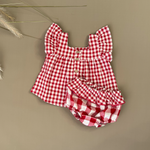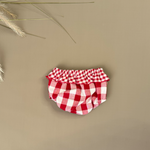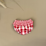 Culotte in delicato Vichy color melograno, realizzata in morbido cotone per il massimo comfort. Perfetta per look raffinati e versatili.