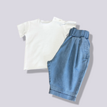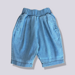 Il pantalone con pences in denim azzurro è un capo di tendenza e funzionale, perfetto per combinare stile e comfort nella vita quotidiana dei più piccoli. Questi pantaloni si distinguono per il loro colore azzurro chiaro, che aggiunge un tocco di freschezza e vivacità al look, rendendoli adatti tanto per la scuola quanto per le avventure all'aperto. Le pences, pieghe cucite che partono dalla cintura, offrono un aggiunto volume e movimento, migliorando la vestibilità e permettendo una maggiore libertà di movimento, aspetto fondamentale per i bambini sempre in azione. Realizzati in denim, un tessuto noto per la sua resistenza e durabilità, questi pantaloni sono ideali per affrontare il gioco e l'usura quotidiani, mantenendo al tempo stesso un aspetto curato.