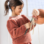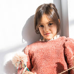 Maglia teddy , realizzata in morbido tessuto e arricchita da maniche a sbuffo che conferiscono un tocco di fantasia e charme. Ideale per un look adorabile e coccoloso, combinando comfort e stile giocoso.