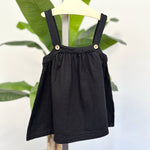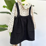 Gonna con bretelle in drill nero: un mix perfetto di praticità e stile. Realizzata in resistente tessuto drill, questa gonna offre una vestibilità comoda e un look elegante, ideale per ogni occasione, dalla scuola al tempo libero.