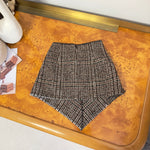Pantaloncino da bambina in principe di Galles, in misto lana con viscosa e poliammide. Modello con pinces frontali e vita regolabile, elegante e versatile, perfetto per outfit curati e comodi.
