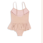 Un costumino intero elegante e morbidissimo, perfetto per le giornate in spiaggia o in piscina. Il tessuto è super elastico e soffice al tatto, con un delicato tocco di lurex che aggiunge luminosità senza rinunciare al comfort. Il design è impreziosito da una gonellina integrata, che dona un tocco dolcissimo e raffinato.