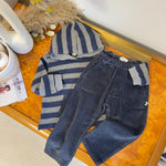 Il design a righe blu e grigio lo rende facile da abbinare, perfetto sia per l’asilo che per il tempo libero.
