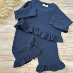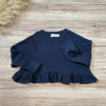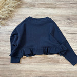fiorile - Maglia in caldo cotone blu notte con ruches