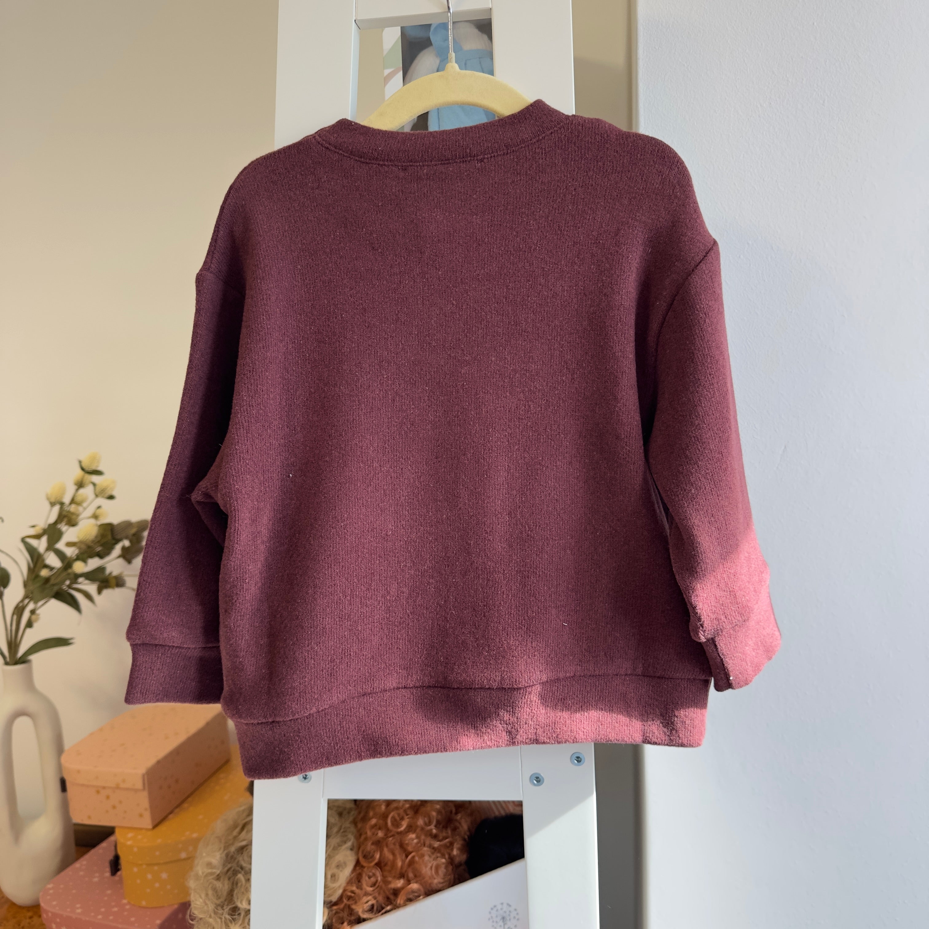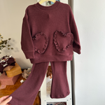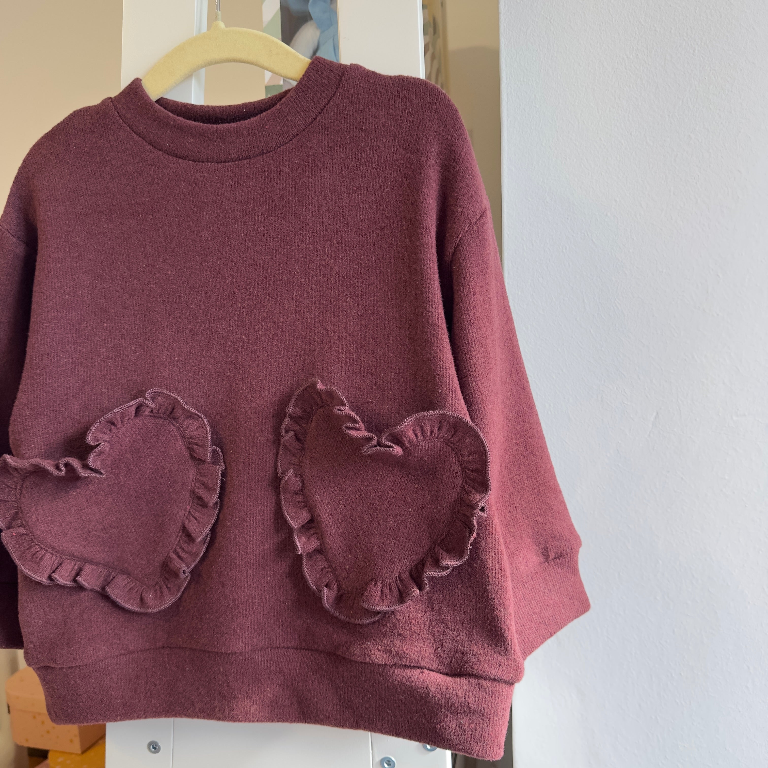 Maglia in caldo cotone borgogna con tasche frontali a cuore