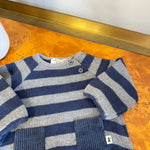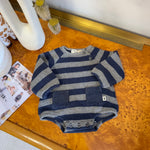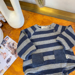 petit indi - Pagliaccetto in maglia di cotone morbidissimo rigato blu e cenere – comfort assoluto
