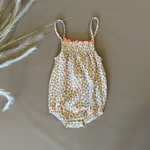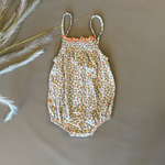 Pagliaccetto in cotone, morbido e traspirante, ideale per le giornate più calde. La fantasia floreale aggiunge un tocco delicato, mentre gli spallini sottili garantiscono comfort e leggerezza. Dotato di pratica apertura inferiore per un cambio facile e veloce. Perfetto da indossare da solo o con un cardigan leggero per le sere d’estate.