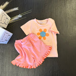Pantaloncino in cotone a quadretti rosa fluo, con romantiche ruches sul fondo per un tocco di dolcezza. Leggero e comodo, perfetto per un look vivace e giocoso!