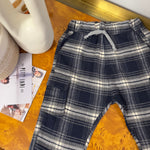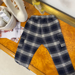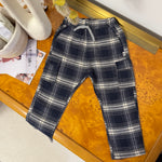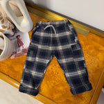 Pantalone cargo in cotone con coulisse scozzese – blu e latte