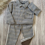 Pantalone combinato: principe ei galles davanti, microvelluto dietro con bande laterali