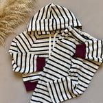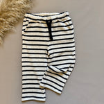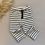 Pantaloni in caldo cotone di qualità premium, morbidi e confortevoli. Il design a righe avorio e carbone conferisce un look elegante e sofisticato. Un capo versatile, facile da abbinare, ideale per ogni occasione e pratico da indossare e da curare.