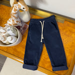 Pantalone in micro velluto di cotone nel raffinato colore blu notte, con comoda coulisse in vita per una vestibilità regolabile. Morbido, facile da indossare e versatile, è perfetto da sfruttare in tutte e tre le stagioni. Adatto sia al quotidiano che a occasioni più curate, è un capo pratico e indispensabile nell’armadio.