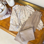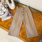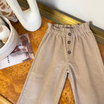 Leo e Lilly - Pantalone palazzo in micro velluto a costina color noce con bottoncini