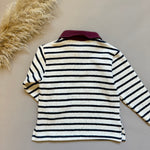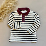 Polo in caldo cotone a righe – avorio , carbone e colletto borgogna