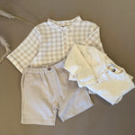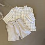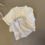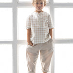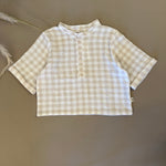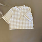 petit indi - Polo in vichy beige con collo alla coreana - stile raffinato