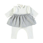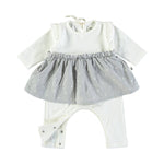 Tutina-abito in caldo cotone, unisce il comfort di una tutina alla grazia di un abito. Morbido e avvolgente, è perfetto per tenere la tua bambina al caldo con stile, offrendo libertà di movimento e un look incantevole per ogni occasione.