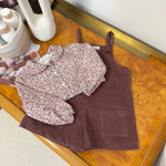 Un abito versatile e raffinato in microvelluto di cotone, morbido e confortevole. La gonna ampia dona un effetto voluminoso, mentre i bottoncini sulle bretelle permettono di incrociarle sul retro, aggiungendo praticità e un dettaglio elegante. Il colore rosa malva lo rende facile da abbinare, trasformandolo in un capo indispensabile e senza tempo nel guardaroba dei più piccoli.
