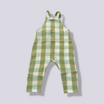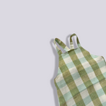 Salopette in lino con un allegro motivo a quadri verdi, perfetta per un look estivo fresco e confortevole. Questo capo unisce lo stile giocoso delle salopette alla leggerezza e traspirabilità del lino, rendendola ideale per le giornate calde. Dotata di bretelle regolabili, offre una vestibilità versatile che si adatta alla crescita del bambino, garantendo allo stesso tempo un tocco di stile unico e vivace.