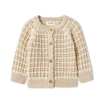 Cardigan in cotone biologico, lavorato a maglia traforata per un tocco di eleganza delicata. Morbido, traspirante e perfetto per completare ogni outfit con stile.