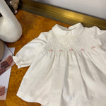 Pepecè - Set bloomer e abitino in micro velluto con punto smock e roseline – latte