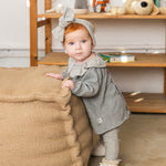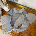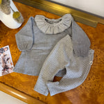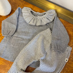 petit indi - Set coordinato in caldo cotone – Blusa cenere con colletto a righe e leggings abbinati