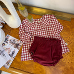 petit indi - Set vichy e velluto borgogna – Un’eleganza che incanta