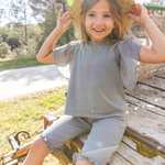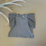 T-shirt grigio in cotone organico con ruches sulle maniche