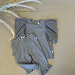 petit indi - T-shirt grigio in cotone organico con ruches sulle maniche