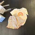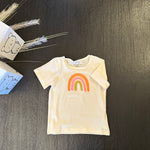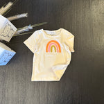 Questa t-shirt in morbido jersey di cotone color crema è arricchita da un disegno di arcobaleno sul davanti, portando un tocco di allegria e speranza al tuo look. Un capo fresco e versatile, perfetto per chi ama uno stile semplice ma con un dettaglio che fa la differenza. Comoda, elegante e sempre positiva.