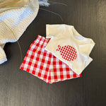 Morbida, fresca e perfetta per ogni occasione. Questa t-shirt in jersey di cotone si distingue per il delicato pesciolino in Vichy amarena applicato sul davanti, un dettaglio che aggiunge un tocco di originalità e raffinatezza. Un capo versatile, ideale per look casual con un pizzico di stile in più