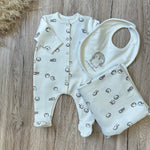 Una tutina dolcissima, realizzata in jersey di cotone morbidissimo, perfetta per i primi mesi.